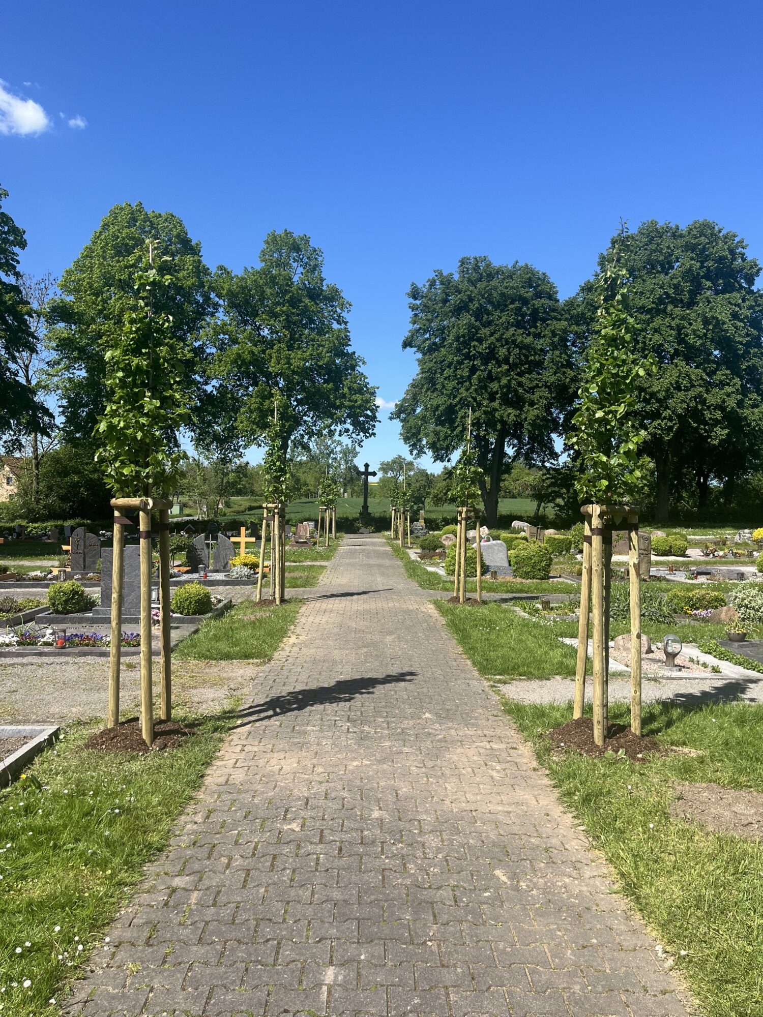 Auf dem Nordfriedhof wurden weitere zehn Bäume entlang des Weges zum Hochkreuz gepflanzt. Die alten Kugelakazien waren nach Angaben der Stadtverwaltung „verbraucht“???!!!