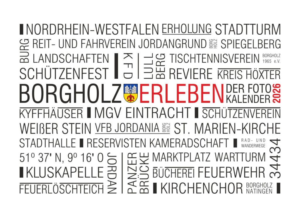 Der Fotokalender 2026 ist ein Muss für alle, die die Schönheit und den Gemeinschaftssinn von Borgholz in ihrem Alltag bewahren möchten. Auch ist er ein besonderes Geschenk für Borgholzer und an Personen die Borgholz verbunden sind.