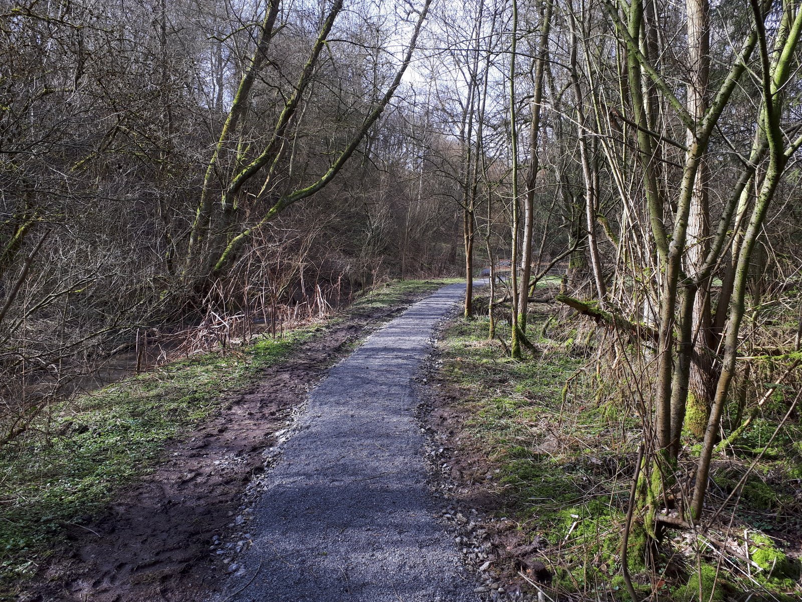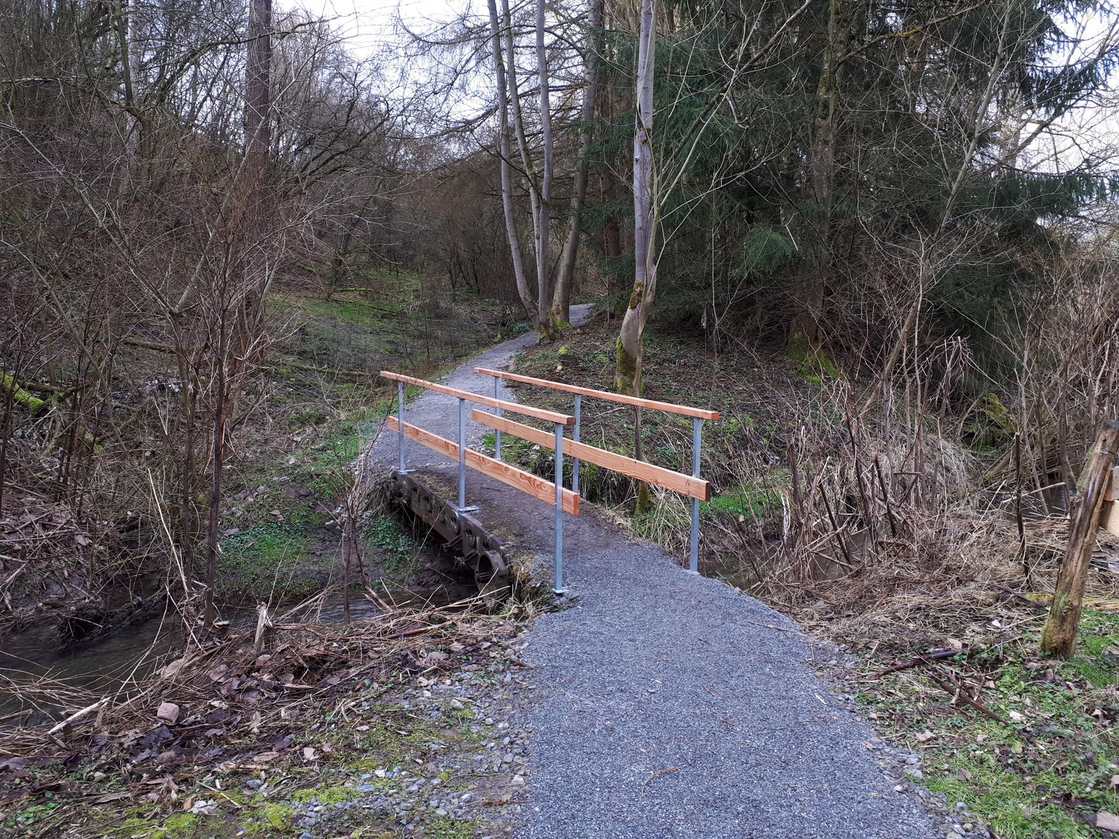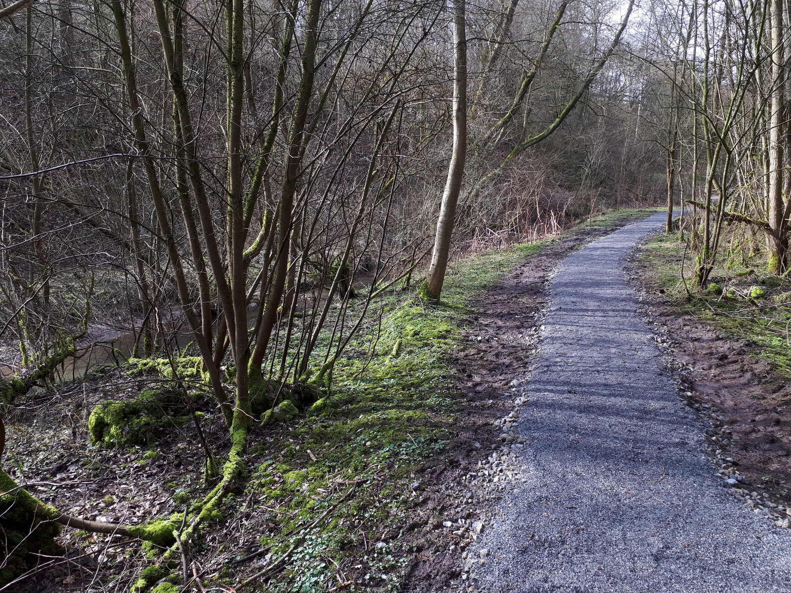 Das Netz von befestigten Wegen in Borgholz wird immer mehr erweitert. Ein sehr schöner Weg führt vom Wendekreis der Straße „Im Tal“ am Jordan entlang in Richtung der Forellenteiche. Hierbei überquert man den Jordan mit Hilfe der „Panzerbrücke“. Diese Strecke war bisher unbefestigt und die meiste Zeit im Jahr schlammig.