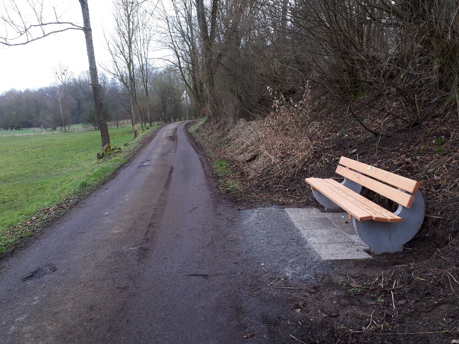 Neben der Bank an dem neu befestigten Weg, stellte er auch noch eine Bank unweit der Forellenteiche auf. Dieser Platz ist besonders idyllisch gelegen, mit einem sehr schönen Ausblick auf die Südseite von Borgholz. Eine Dritte Bank zum Ausruhen und zum Genießen der Natur steht jetzt am Ende des Weges „Kinrode“.